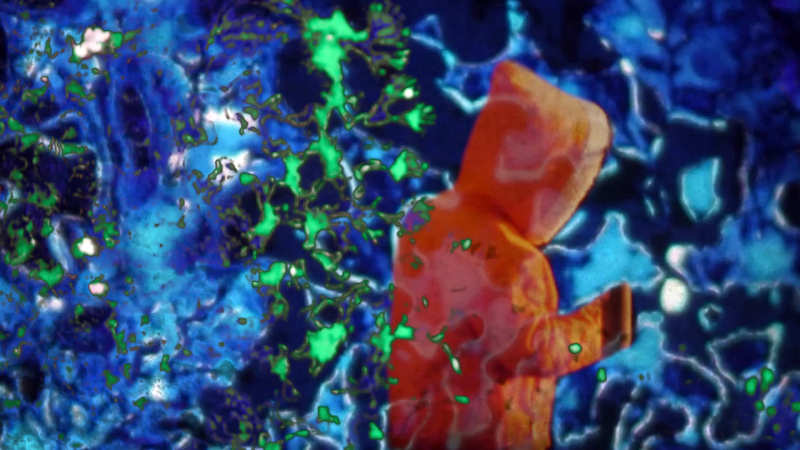 The film draws on fears and anxieties about childhood. The objects and drawing elements in it are cinematic references to the system of motifs associated with my work, which, together with ordinary sequences of images documented in cinematic notes, come together into a string of scenes without a story. The series of pictures randomly exposed to each other also resulted in new meaning combinations for myself, thus emphasizing the dreamlike nature of the film's composition. Shot on standard 8 mm film. Hand coloured -